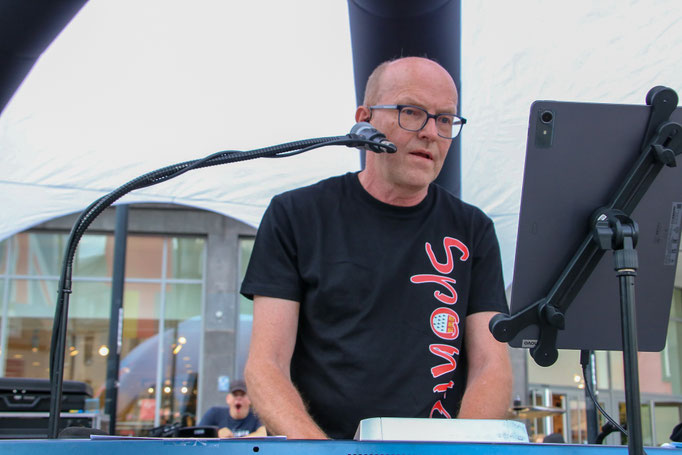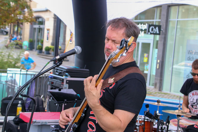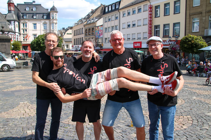 Auf der Ki & Ka-Sitzung in Kobern: Band-"Gründervater" Bernhard Leiendecker und unser Küken an den Drums Jo Leßlich